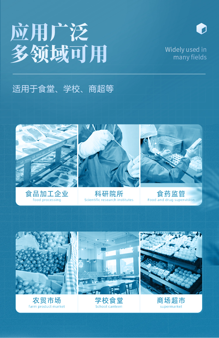 山東云唐智能科技有限公司生產(chǎn)的農(nóng)藥殘留檢測(cè)儀廣泛應(yīng)用于主要用于蔬菜、水果、茶葉、糧食、農(nóng)副產(chǎn)品等食品中農(nóng)藥殘留的快速檢測(cè),依據(jù)國(guó)標(biāo)GB/T5009.199-2003進(jìn)行檢測(cè),適用于果蔬茶生產(chǎn)基地以及農(nóng)貿(mào)批發(fā)銷售市場(chǎng)現(xiàn)場(chǎng)檢測(cè),餐館、學(xué)校、食堂、家庭果蔬加工前的安全速測(cè)等。