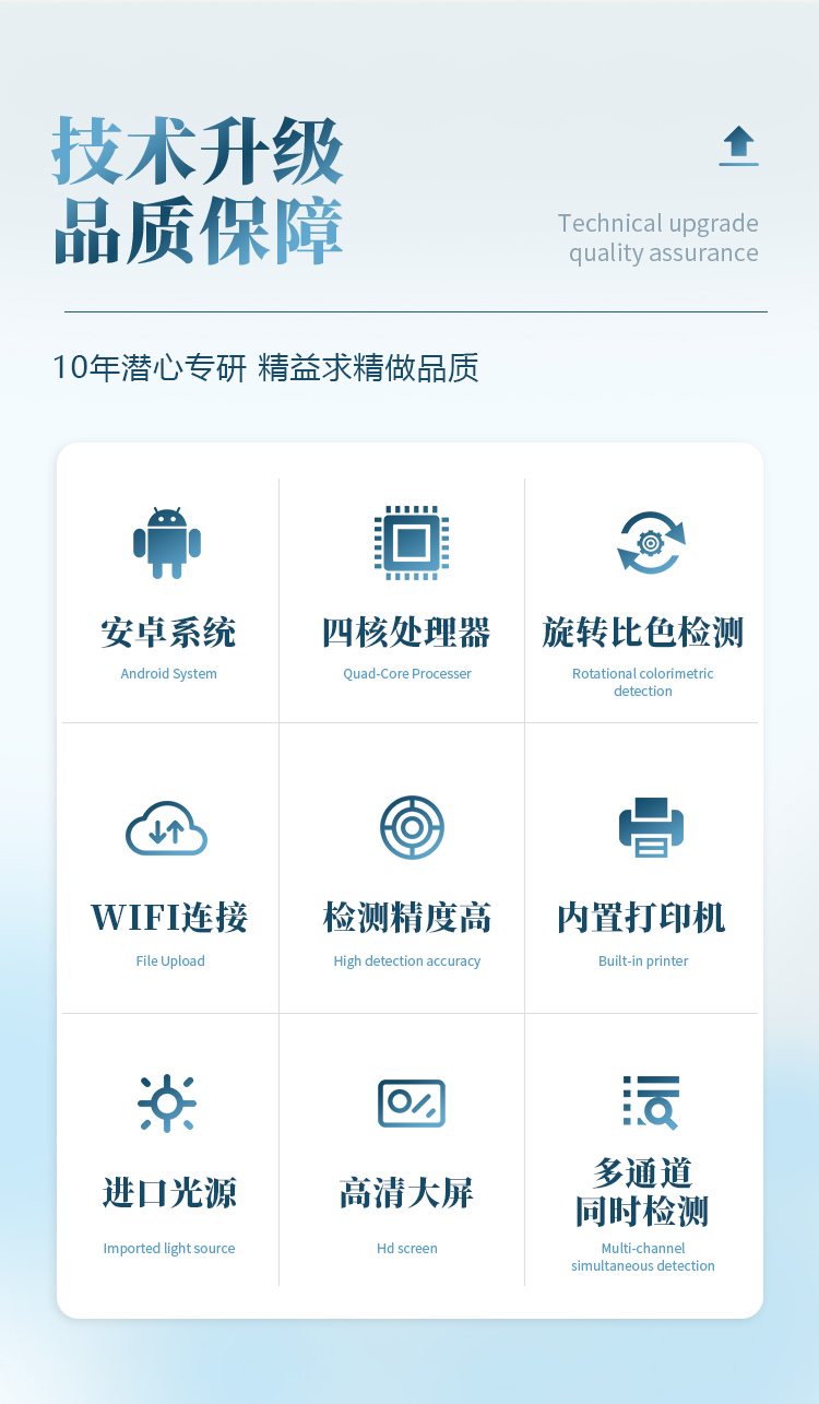 *儀器采用精密旋轉(zhuǎn)比色池設(shè)計(jì),使用光源一致,可以解決各通道間由于光源誤差帶來(lái)的檢測(cè)結(jié)果誤差問(wèn)題,檢測(cè)結(jié)果更加精準(zhǔn)。