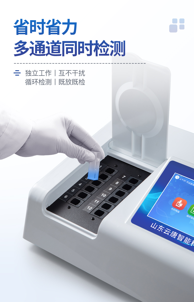 4、檢測通道:10個檢測通道,可以同時測試多個樣品,循環檢測,即放即檢,每個樣品由程序控制分別獨立工作,不會互相干擾。