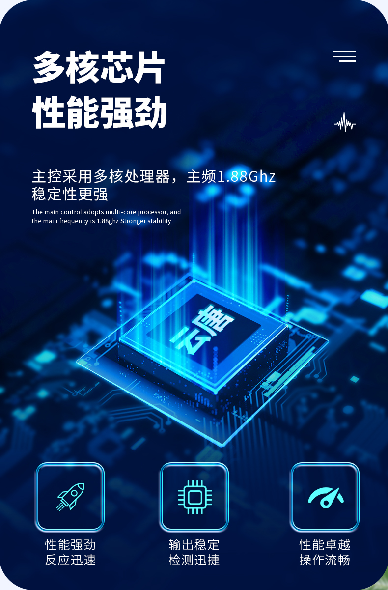 5、智能操作系統,采用更加人性化操作,主控采用多核處理器,主頻1.88Ghz,運轉速度更快速,穩定性更強。