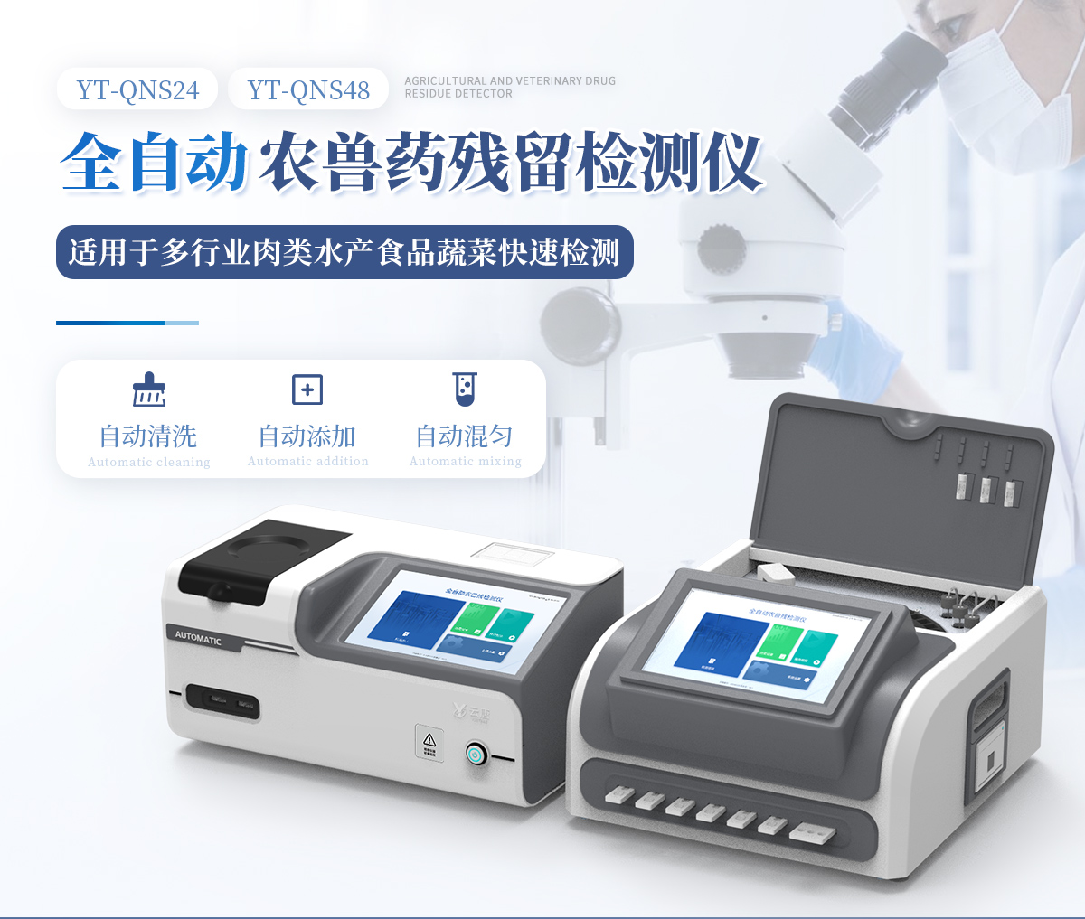 全自動(dòng)農(nóng)獸藥殘留檢測(cè)儀可對(duì)各種蔬菜水果中有機(jī)磷和氨基甲酸酯類農(nóng)藥殘留;各種肉類水產(chǎn)食品中瘦肉精激素類殘留,抗生素殘留,獸藥殘留,水產(chǎn)品藥物殘留等百余種項(xiàng)目進(jìn)行快速檢測(cè)。該設(shè)備廣泛應(yīng)用于蔬菜批發(fā)市場(chǎng)、超市、商場(chǎng)、食藥監(jiān)等部門的蔬菜和水果中的農(nóng)藥殘留檢測(cè)。