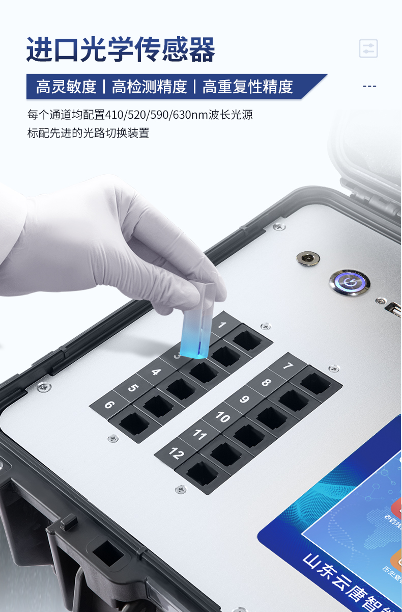 3、單波長冷光源,每個通道均配置410、520、590、630nm波長光源,標配**的光路切換裝置,專利光路切換功能可實現*多64波長,并且所有檢測項目可實現所有通道同時檢測。