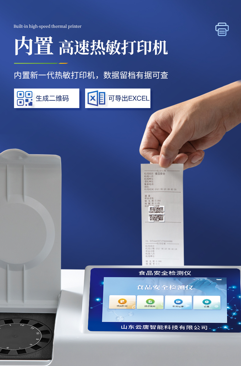 8.4、打印系統(tǒng):內(nèi)置全新打印機(jī),可以打印:項(xiàng)目名稱,二維碼,抽樣信息、檢測(cè)信息,受檢信息、復(fù)核信息、抽樣日期、檢測(cè)日期等信息的打印。