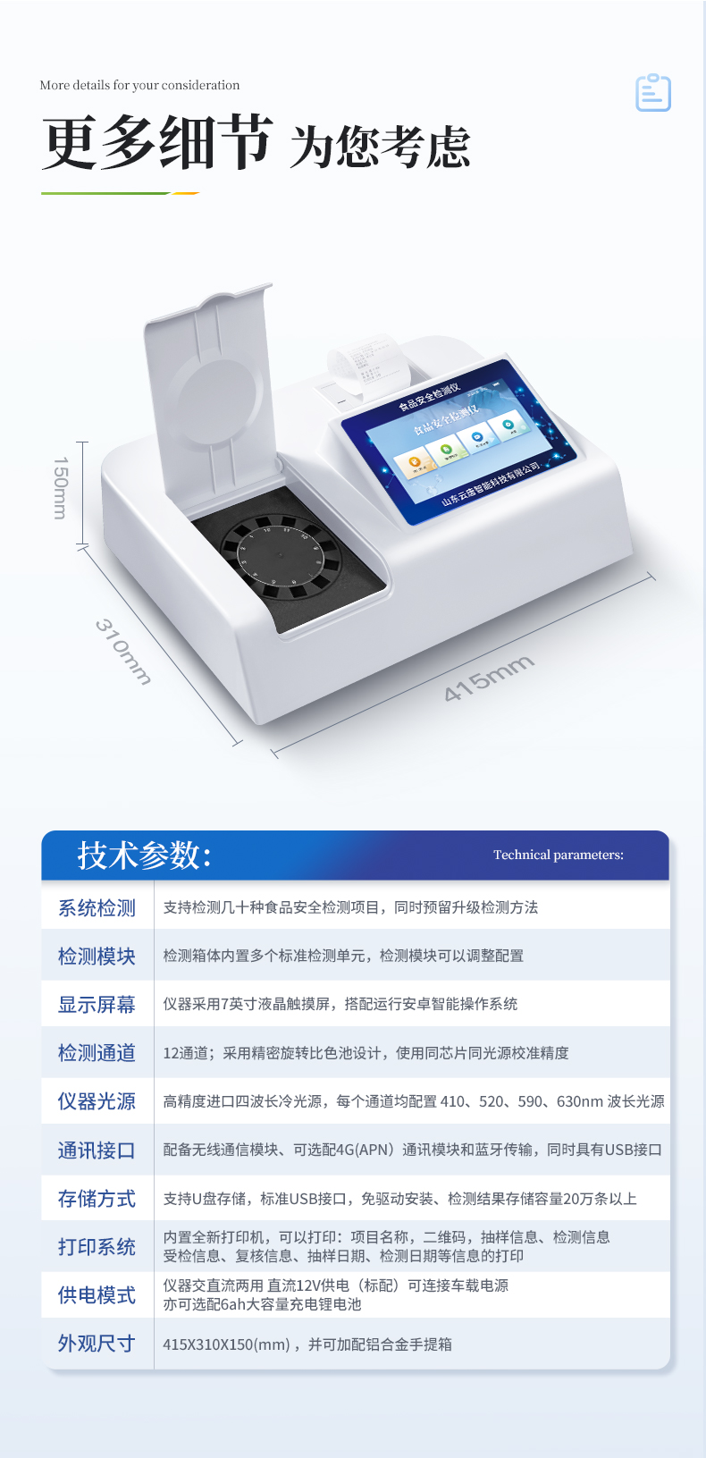 高精度食品安全檢測(cè)儀可快速檢測(cè)60多項(xiàng)目,包含:濫用食品添加劑、非食用化學(xué)物質(zhì)、農(nóng)藥殘留、重金屬含量、病害肉成分、營(yíng)養(yǎng)強(qiáng)化劑、化學(xué)類殘留、食用油脂檢測(cè)、水酒飲品分析、調(diào)味品成分、食用色素等現(xiàn)場(chǎng)的定性定量檢測(cè)。