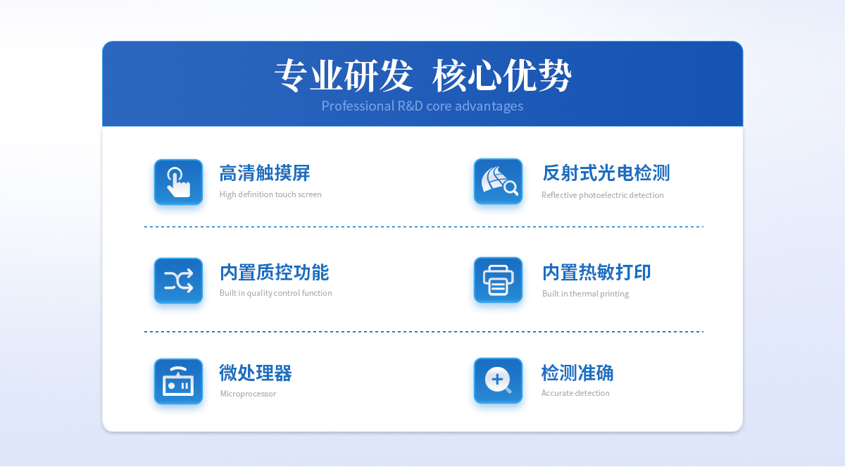 | 1、 Android觸控系統(tǒng)結(jié)合大尺寸高清屏幕,界面友好,操作簡單流暢,無需外接設(shè)備; | 2、 ★單卡+多聯(lián)卡設(shè)計方案,顯著提升檢測效率,滿足批量樣本快速處理需求; | 3、 可以500萬條檢測結(jié)果,支持按日期靈活查詢、預(yù)覽、刪除結(jié)果,并生成多樣化專業(yè)報告。 | 4、 內(nèi)置熱敏打印機,檢測完成即可現(xiàn)場打印標(biāo)準(zhǔn)報告,提升工作效率。 | 5、 關(guān)鍵部件實時自診斷功能,保障儀器長期穩(wěn)定運行。 | 6、 高速有線/無線網(wǎng)絡(luò)及藍(lán)牙,構(gòu)建完善的數(shù)據(jù)監(jiān)控平臺,實現(xiàn)數(shù)據(jù)實時上傳、遠(yuǎn)程查詢、統(tǒng)計分析和監(jiān)管協(xié)同。 | 7、 豐富的接口設(shè)計,輕松連接電腦、U盤、網(wǎng)絡(luò)及上位機系統(tǒng),支持U盤導(dǎo)出。 | 8、 孵育模塊為特定試紙條反應(yīng)提供**溫度環(huán)境。 | 9、 流線型結(jié)構(gòu),緊湊輕便,兼顧實驗室耐用性與檢測需求。 | 10、 二維碼掃描錄入樣本信息,避免人工錯誤。 | 11、 插卡判斷:檢測卡未插入檢測通道不能檢測 | 12、 內(nèi)置質(zhì)控功能,可設(shè)備送檢、設(shè)備自檢、試劑卡自檢 | 13、 檢測方式:孵育檢測、即時檢測(對檢測數(shù)據(jù)復(fù)檢核實) | 14、 檢測曲線:可以對試劑卡的檢測核驗,防止誤判 | 15、 檢測結(jié)果:報告出檢測項目、被測物質(zhì)的濃度、檢測單位、被檢查單位、檢驗員、檢測時間、檢測限等信息可在觸摸屏上顯示,可通過儀器內(nèi)置打印機輸出 | 16、 項目管理:支持檢測項目拓展功能 | 17、 界面設(shè)置:可修改標(biāo)題和頁尾信息,靈活展示儀器信息 |