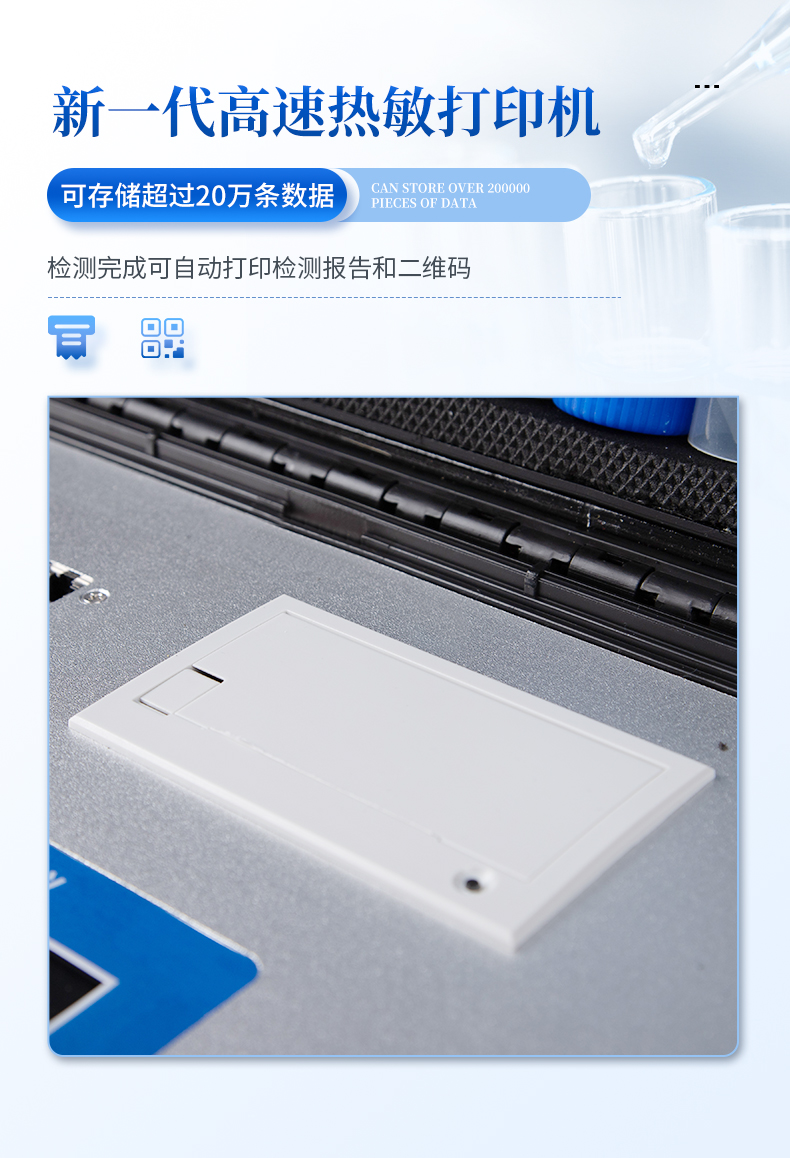 4、新一代高速熱敏打印機,檢測完成可自動打印檢測報告和二維碼。