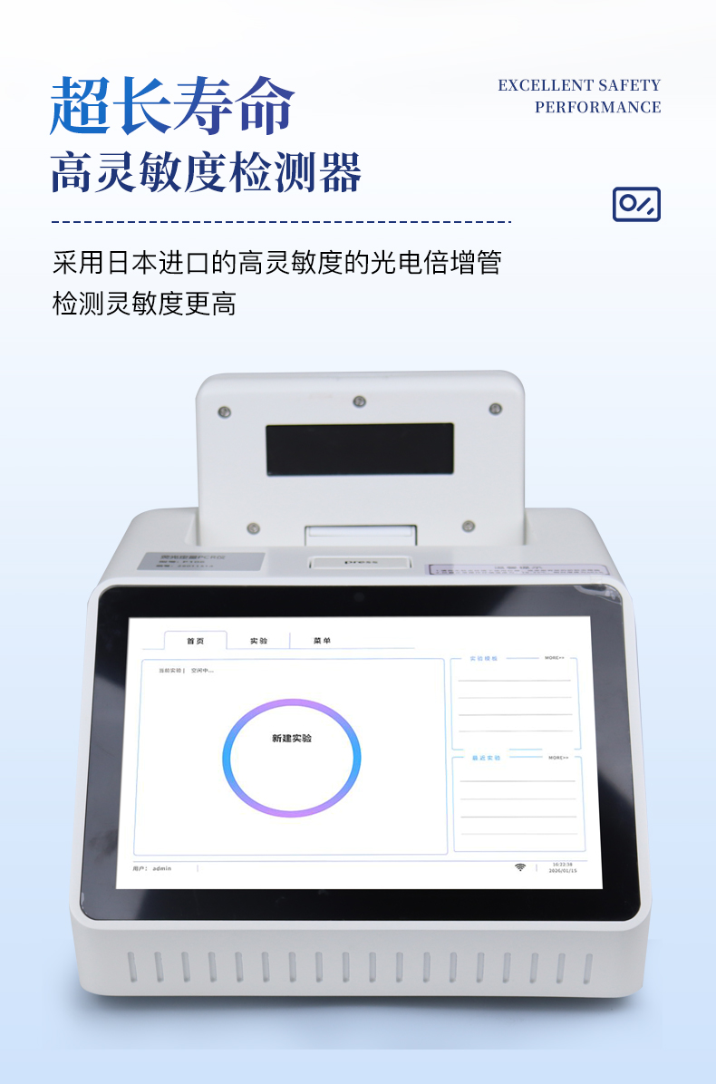 | 1.智能操作系統(tǒng),實(shí)驗(yàn)盡在掌握 | A雙模式靈活控制:支持通過(guò)儀器觸摸屏獨(dú)立運(yùn)行,也支持通過(guò)電腦軟件進(jìn)行遠(yuǎn)程控制與數(shù)據(jù)管理,適應(yīng)不同實(shí)驗(yàn)場(chǎng)景需求。 | B程序更新與預(yù)設(shè):支持在線更新實(shí)驗(yàn)程序,并內(nèi)置豐富的預(yù)設(shè)實(shí)驗(yàn)程序模板,用戶亦可自定義保存常用模版,實(shí)現(xiàn)一鍵快速啟動(dòng),極大提升操作效率。 | C極簡(jiǎn)啟動(dòng)體驗(yàn)(可選配):可定制集成攝像頭掃描系統(tǒng),用戶只需掃描樣品板或程序卡的二維碼,即可自動(dòng)識(shí)別并調(diào)用對(duì)應(yīng)實(shí)驗(yàn)程序,簡(jiǎn)化流程,避免人為設(shè)置錯(cuò)誤。 | D操作簡(jiǎn)單:無(wú)論是觸摸屏界面還是電腦軟件,均設(shè)計(jì)得直觀易懂,新用戶也能快速上手。預(yù)置常用程序模板,進(jìn)一步簡(jiǎn)化操作流程。 | 2.精準(zhǔn)穩(wěn)定的溫控與光學(xué)核心 | A長(zhǎng)久精準(zhǔn)的溫控系統(tǒng):采用進(jìn)口***TEC半導(dǎo)體制冷模塊,控溫精準(zhǔn)(±0.1°C),孔間溫度均勻性**(≤±0.3°C)。系統(tǒng)穩(wěn)定性卓越,長(zhǎng)期使用性能衰減小,校準(zhǔn)周期長(zhǎng)達(dá)數(shù)年,顯著降低維護(hù)成本與運(yùn)營(yíng)中斷。 | B免維護(hù)的靈敏光學(xué)系統(tǒng):配備4個(gè)獨(dú)立LED光源與4個(gè)獨(dú)立光電二極管檢測(cè)器,實(shí)現(xiàn)四通道熒光同步精準(zhǔn)檢測(cè)。采用超長(zhǎng)壽命進(jìn)口光源,設(shè)計(jì)壽命期內(nèi)免維護(hù),無(wú)需額外校準(zhǔn)或更換,保障檢測(cè)結(jié)果長(zhǎng)期一致性與高靈敏度。 | C卓越的數(shù)據(jù)質(zhì)量:實(shí)驗(yàn)線性相關(guān)性高(R2≥0.999),重復(fù)性優(yōu)異(孔間CV值低),確保定量結(jié)果準(zhǔn)確可靠,數(shù)據(jù)置信度高 | 3.**便捷的數(shù)據(jù)與輸出管理 | A多重?cái)?shù)據(jù)導(dǎo)出方式:支持通過(guò)USB存儲(chǔ)設(shè)備直接拷貝,或經(jīng)由Wi-Fi無(wú)線網(wǎng)絡(luò)傳輸數(shù)據(jù)至本地服務(wù)器或云端,方便靈活,滿足各類(lèi)實(shí)驗(yàn)室數(shù)據(jù)管理習(xí)慣。 | B豐富的報(bào)告導(dǎo)出與打印:支持生成并導(dǎo)出多種格式(如PDF、Excel)的實(shí)驗(yàn)報(bào)告。儀器兼容USB熱敏打印機(jī)、藍(lán)牙無(wú)線打印機(jī)及常規(guī)A4打印機(jī),可直接在儀器上或通過(guò)電腦一鍵導(dǎo)出并打印專(zhuān)業(yè)報(bào)告,便于結(jié)果存檔與即時(shí)分享。 | 4.快速**與堅(jiān)固耐用 | A升降溫速度快:優(yōu)化設(shè)計(jì)的溫控系統(tǒng)具備高速升降溫能力,顯著縮短單次循環(huán)與整體檢測(cè)時(shí)間,提升實(shí)驗(yàn)通量。 | B超長(zhǎng)使用壽命:核心部件均選用工業(yè)級(jí)耐用材料與設(shè)計(jì),整機(jī)運(yùn)行穩(wěn)定可靠,致力于為用戶提供長(zhǎng)久的投資回報(bào)。 |