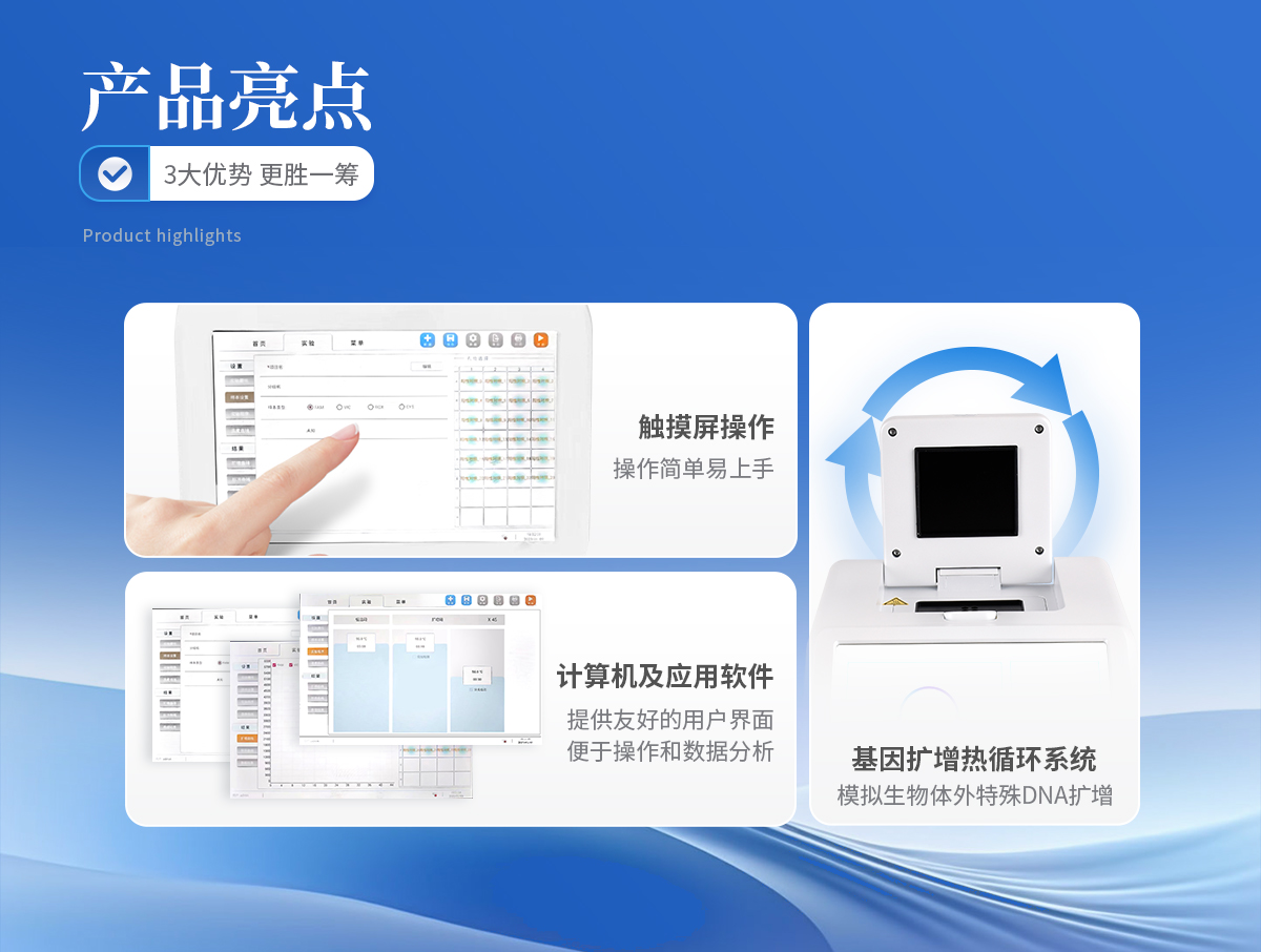 對取于其他動物體內的生物樣本(如血液,體液等)中包含的目標核酸,進行快速精準的定性和定量分析,同時也能夠對特殊樣本進行標準曲線,熔解曲線,基因分型等分析。